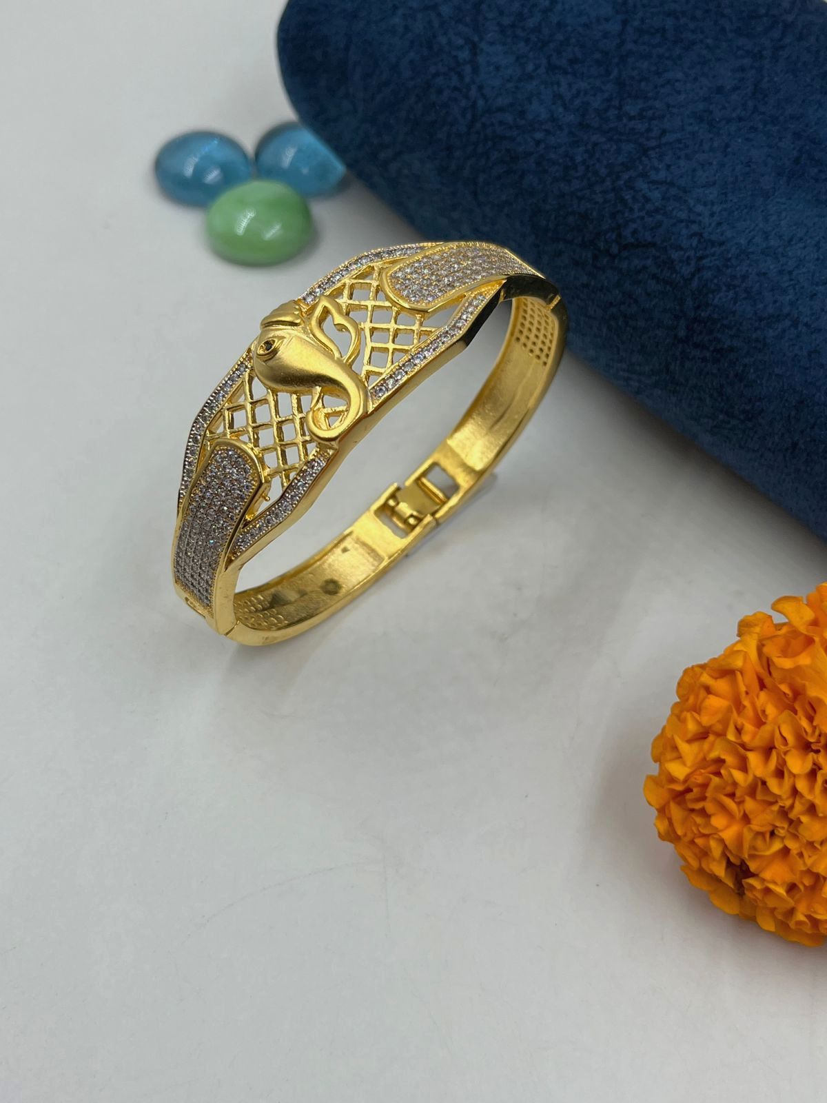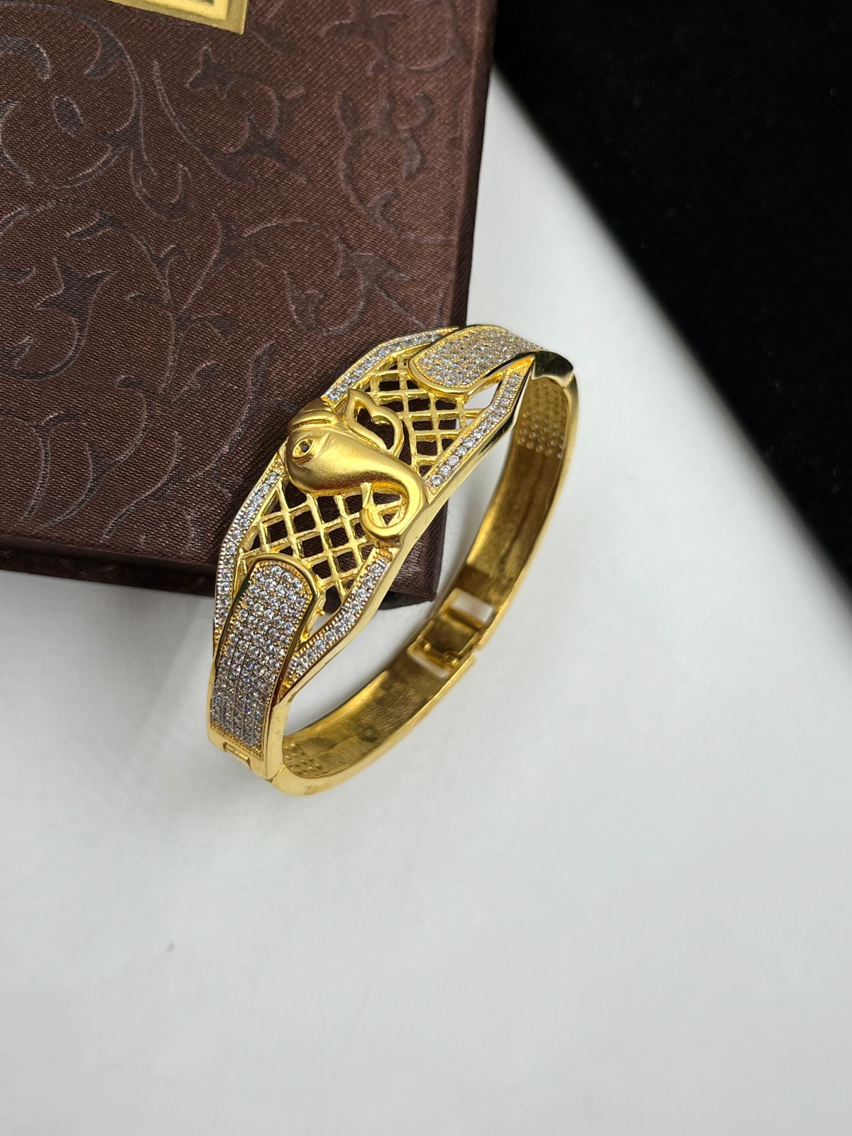 ONE GRAM GOLD PLATING GANPATI BAPPA DIAMOND KADA FOR MEN DESIGN A-57