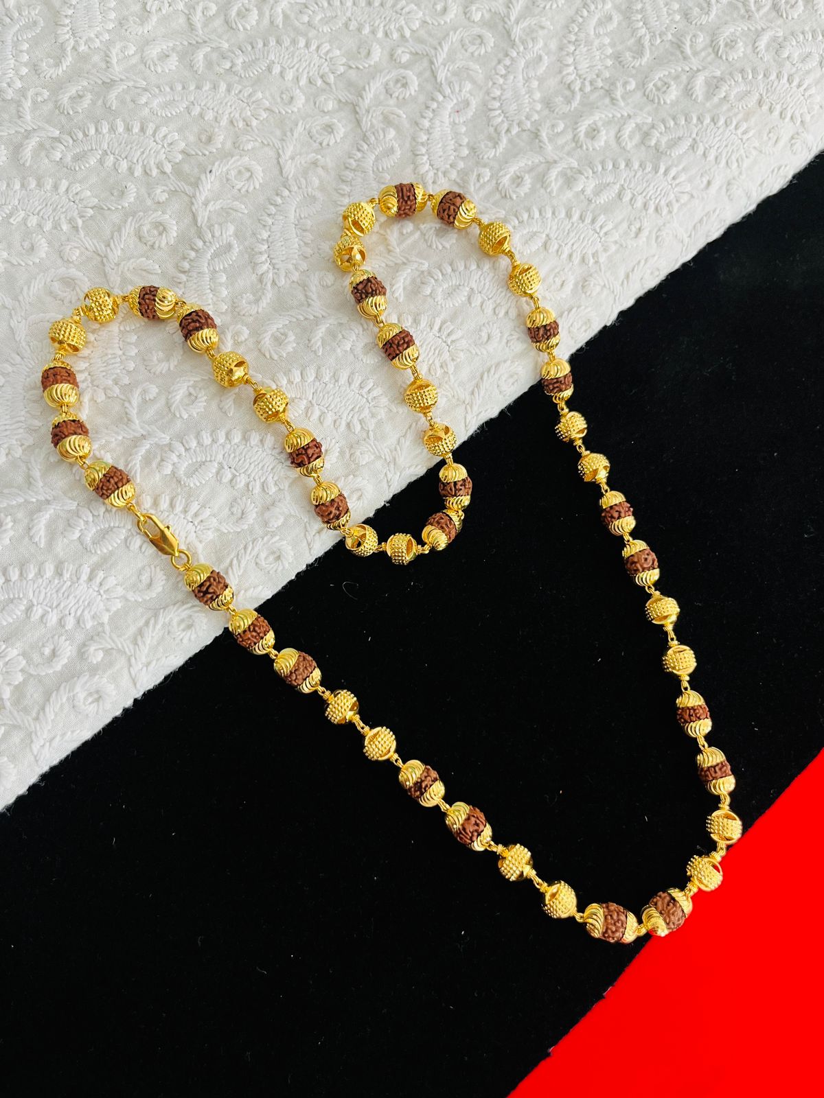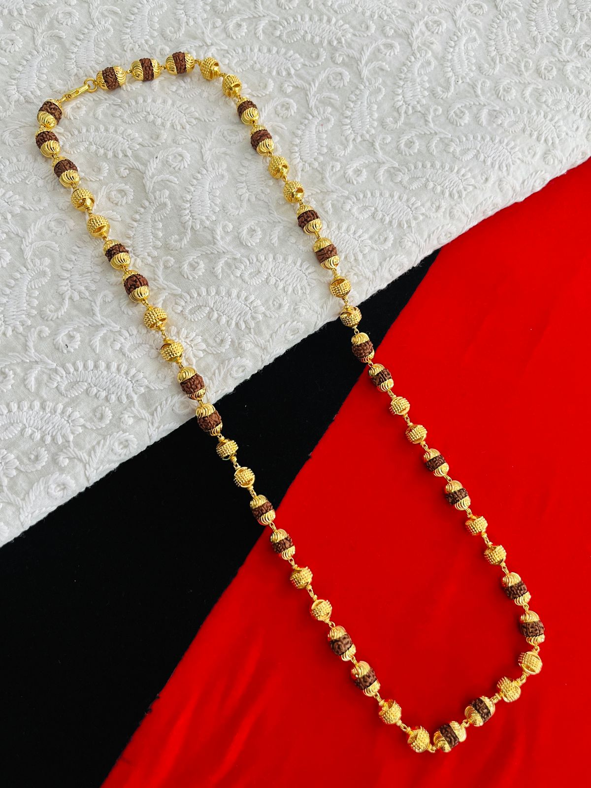 1 GRAM GOLD BROWN RUDRAKSHA MALA FOR MEN DESIGN A-86