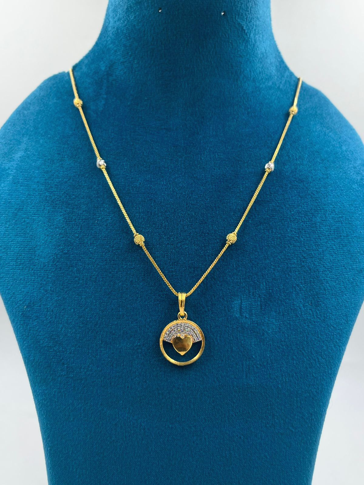1 GRAM GOLD LADIES , WOMEN CHAIN WITH DIAMOND HEART PENDANT DESIGN A-48