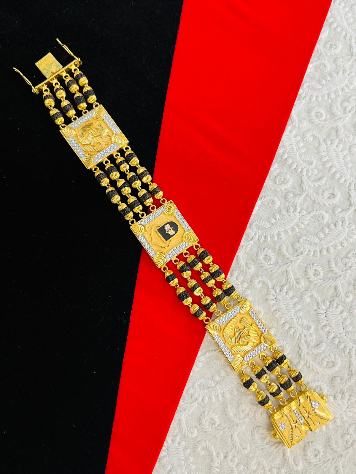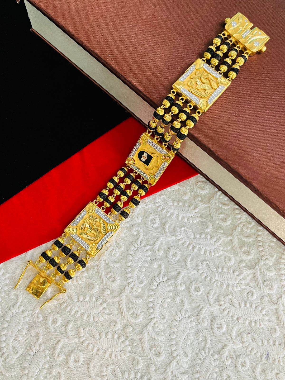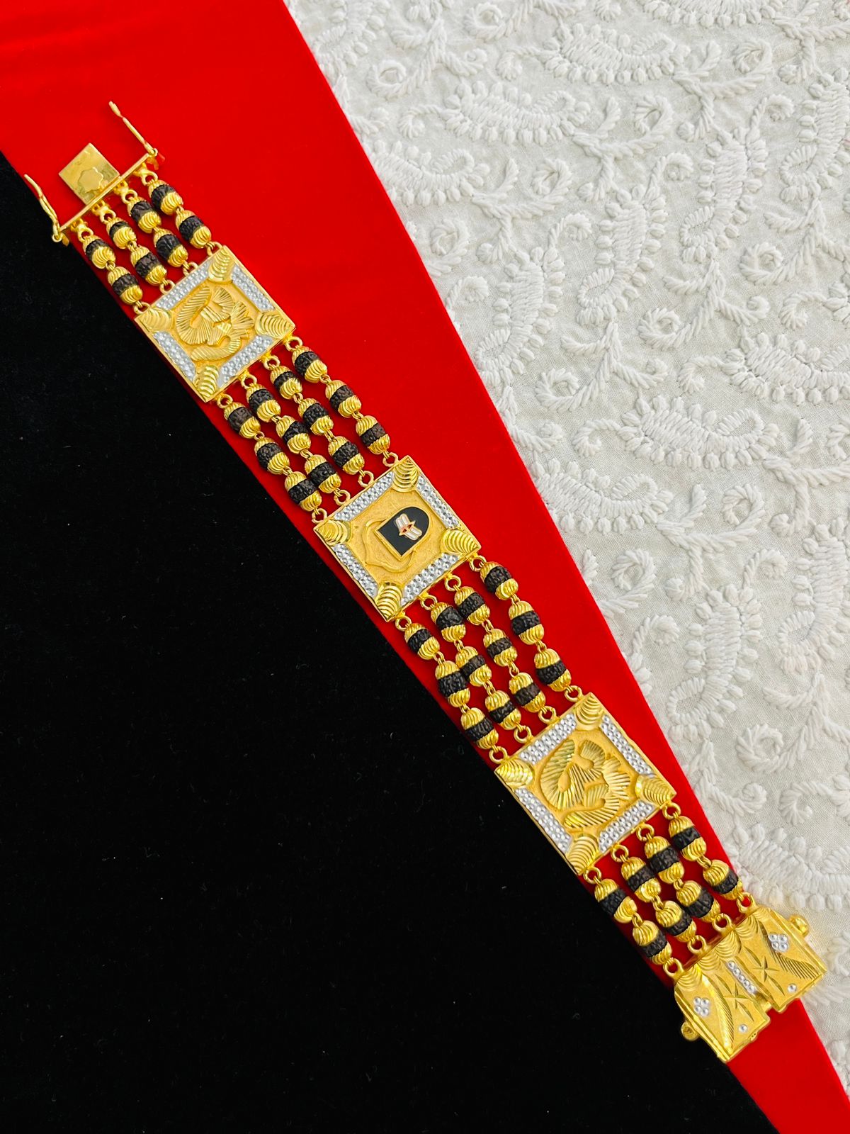 1 GRAM GOLD 4 LINE RUDRAKSHA SHIVLING OM (AUM) BRACELET FOR MEN DESIGN A-347
