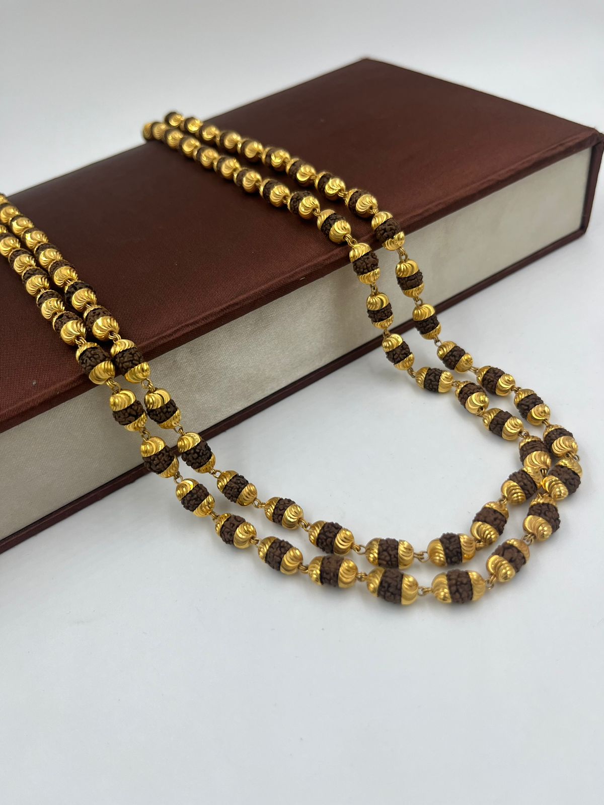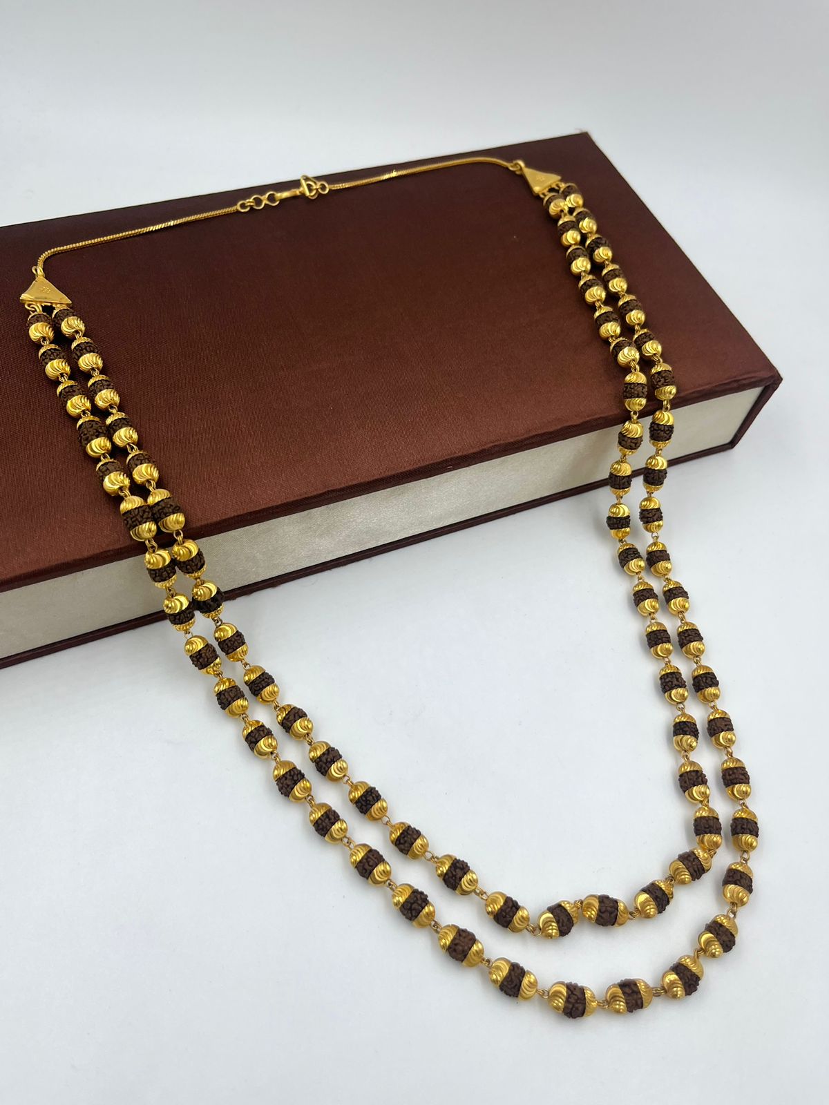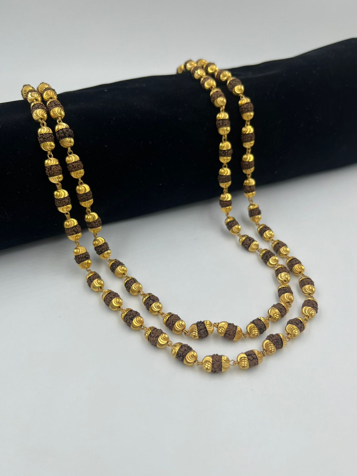 1 GRAM GOLD FORMING 2 LINE RUDRAKSHA MALA FOR MEN DESIGN A-70