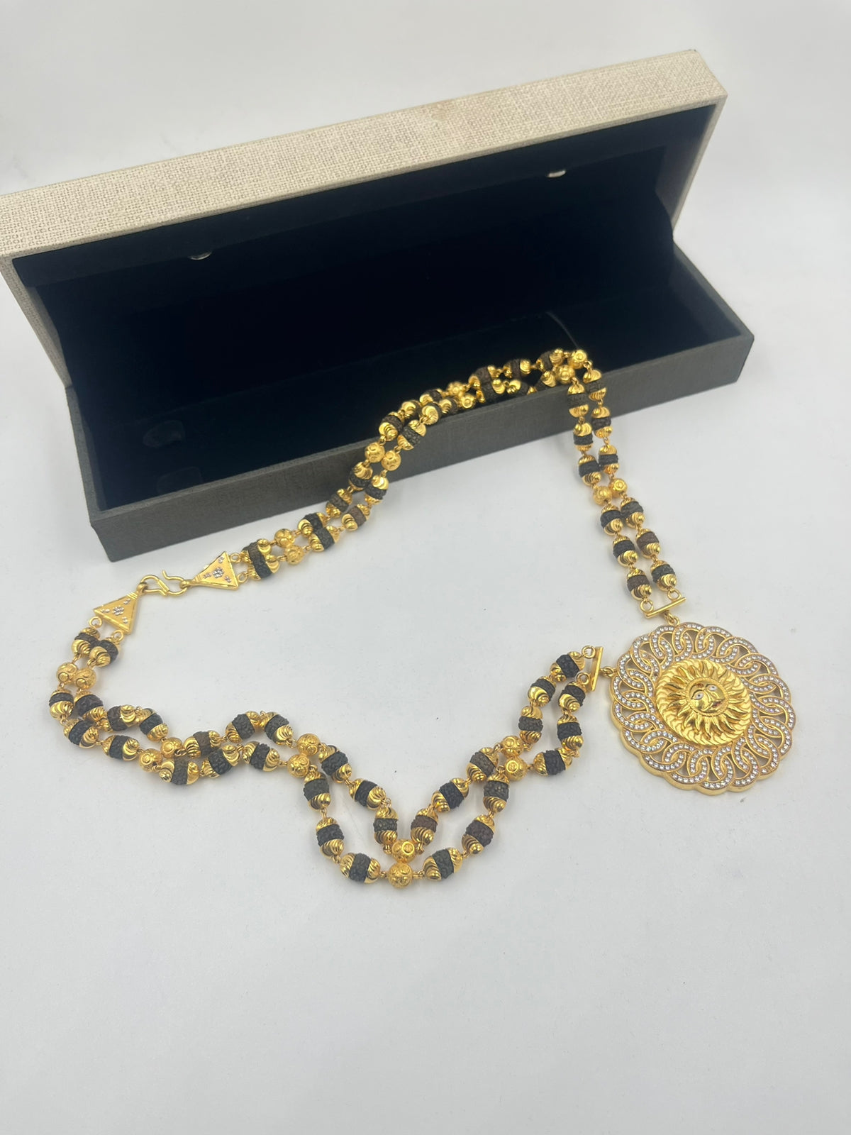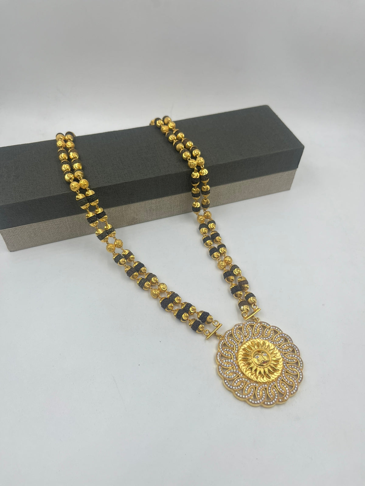 1 GRAM GOLD FORMING BLACK MOTI RUDRAKSHA MALA WITH SURYA PENDANT FOR MEN DESIGN A-2
