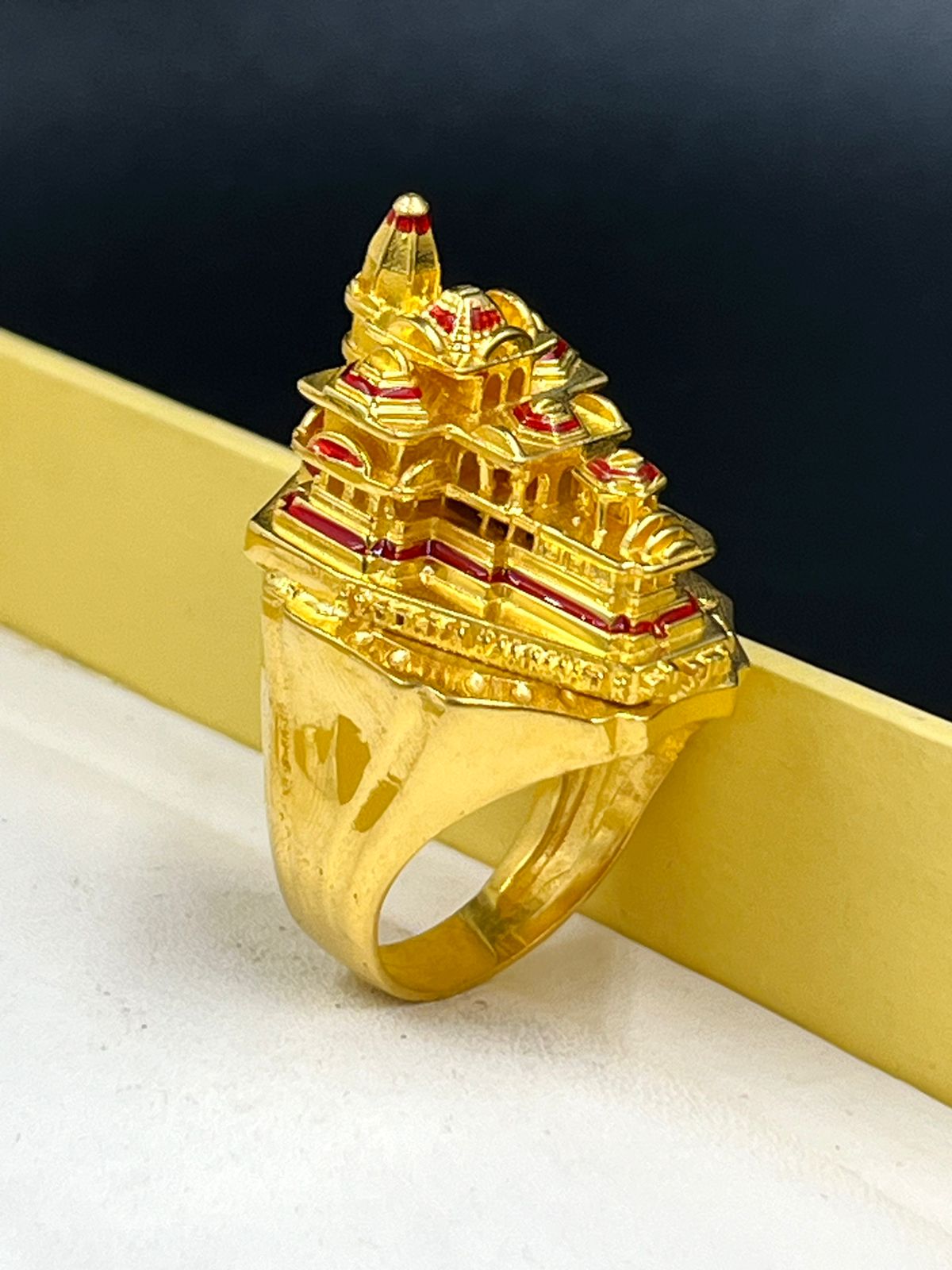 1 GRAM GOLD FORMING SHREE RAM MANDIR (AYODHYA RAM MANDIR) RING FOR MEN DESIGN A-826