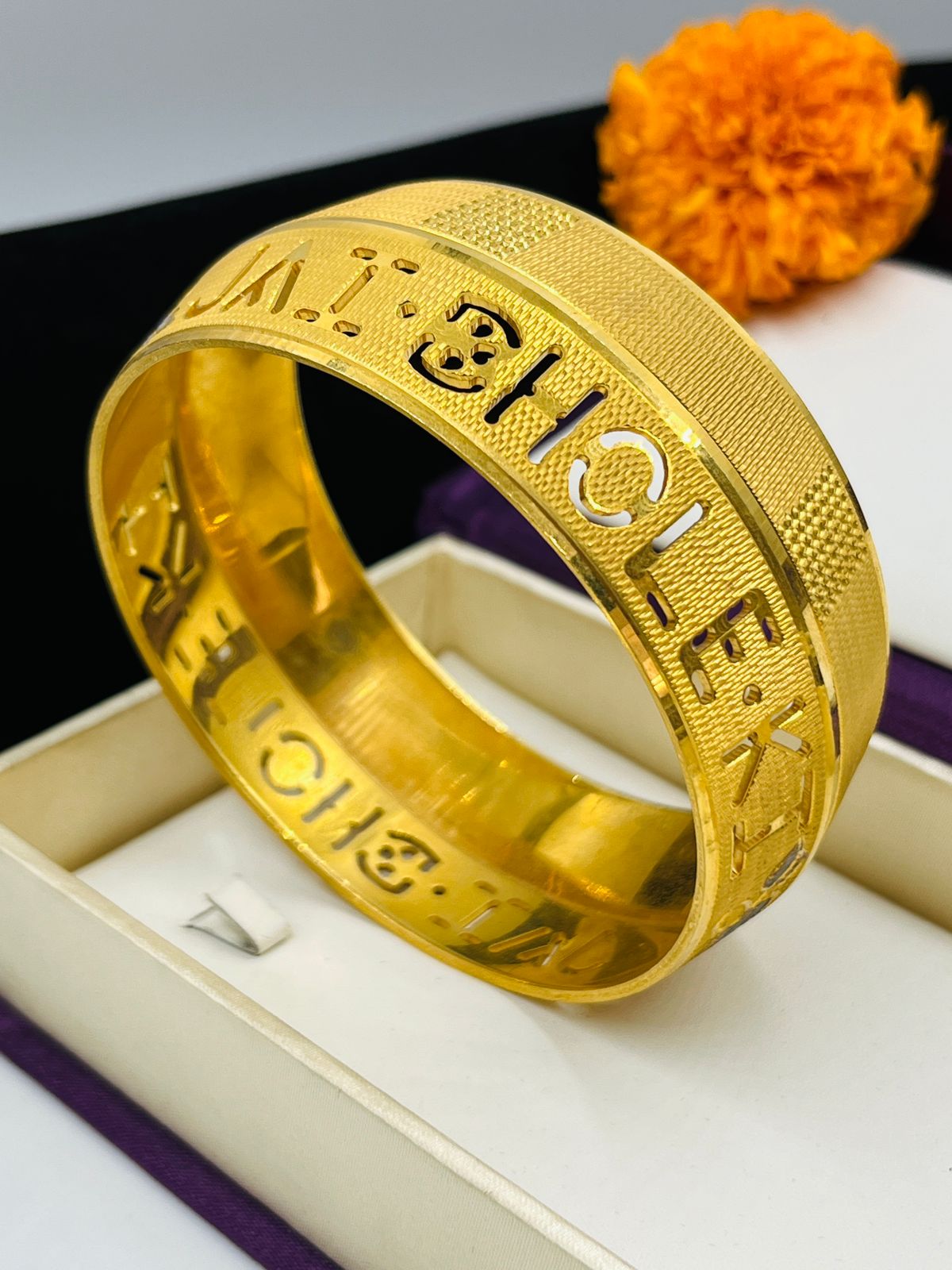 1 GRAM GOLD JAY BHOLE KI PUNJABI KADA FOR MEN DESIGN A-26