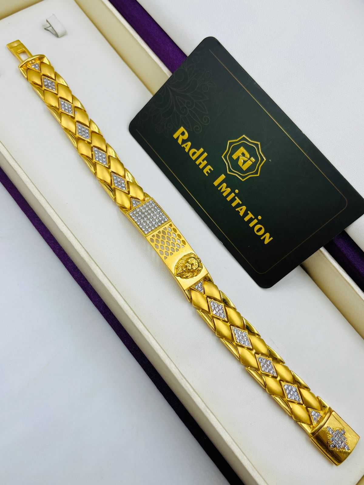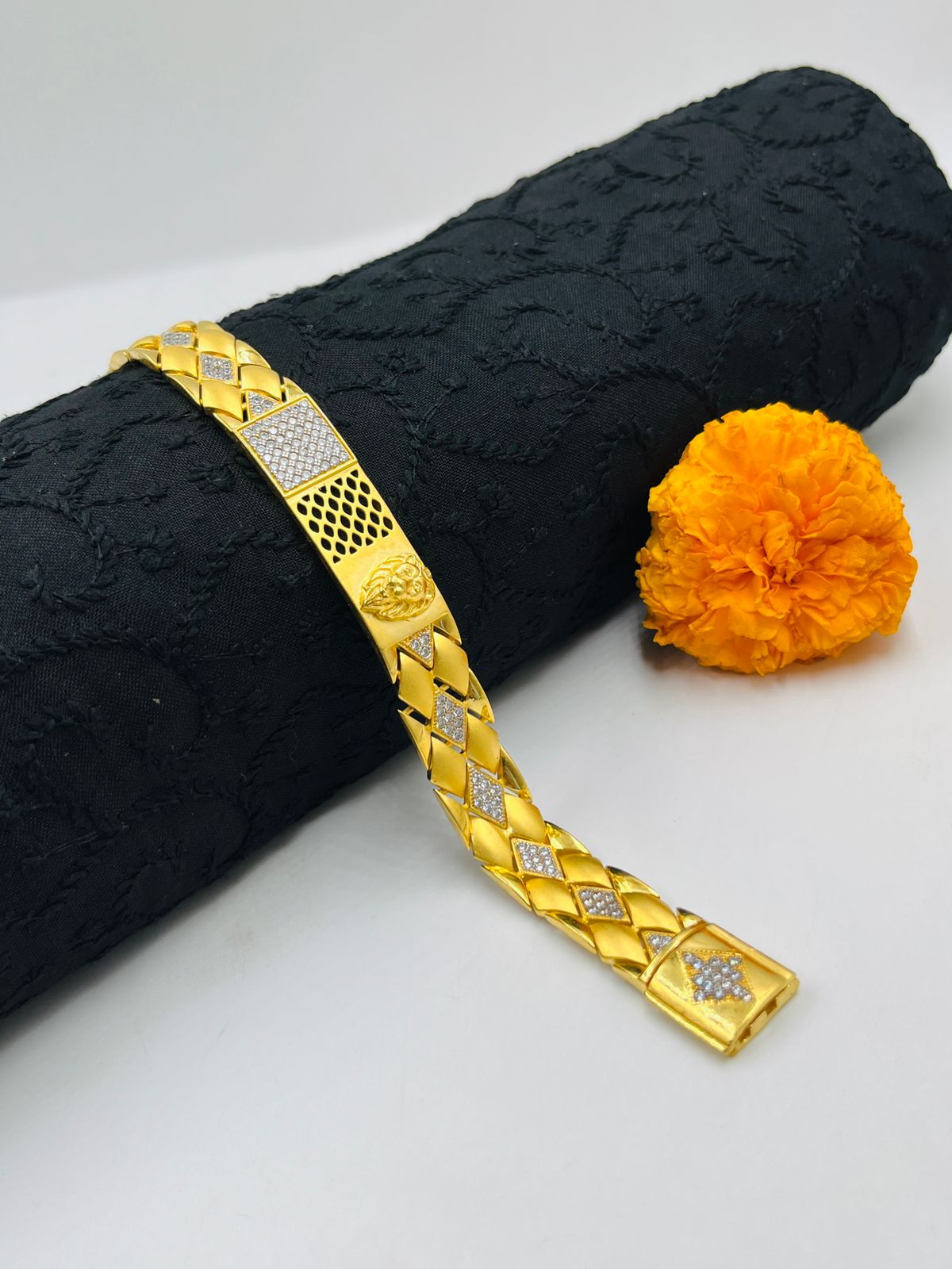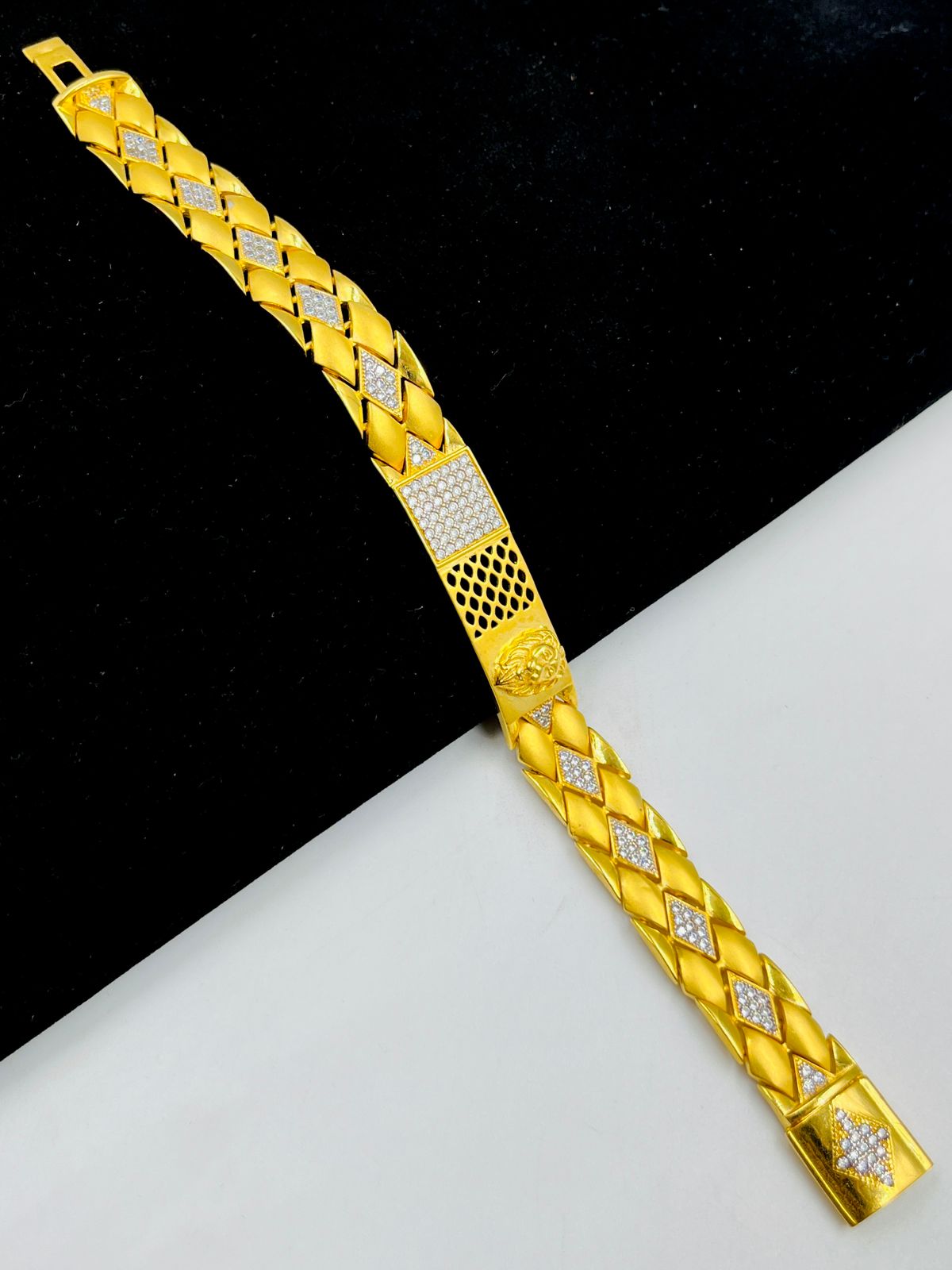 1 GRAM GOLD LION FACE DIAMOND BRACELET FOR MEN DESIGN A-388