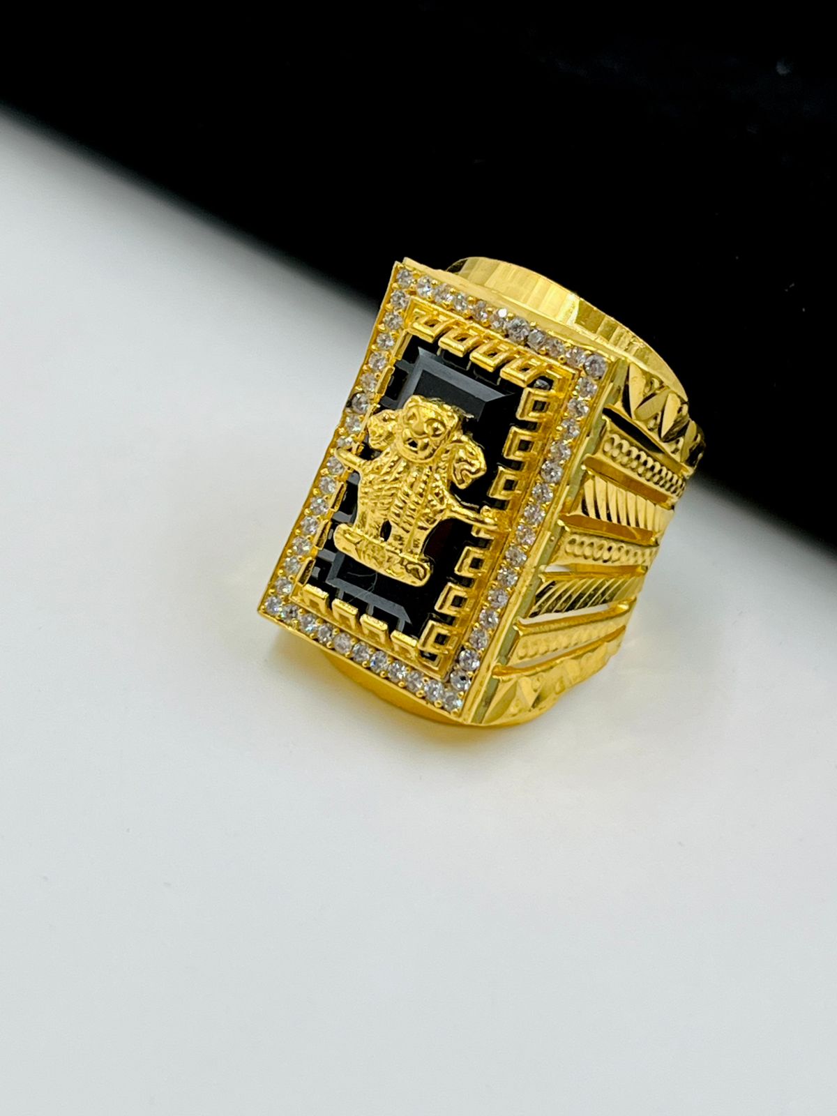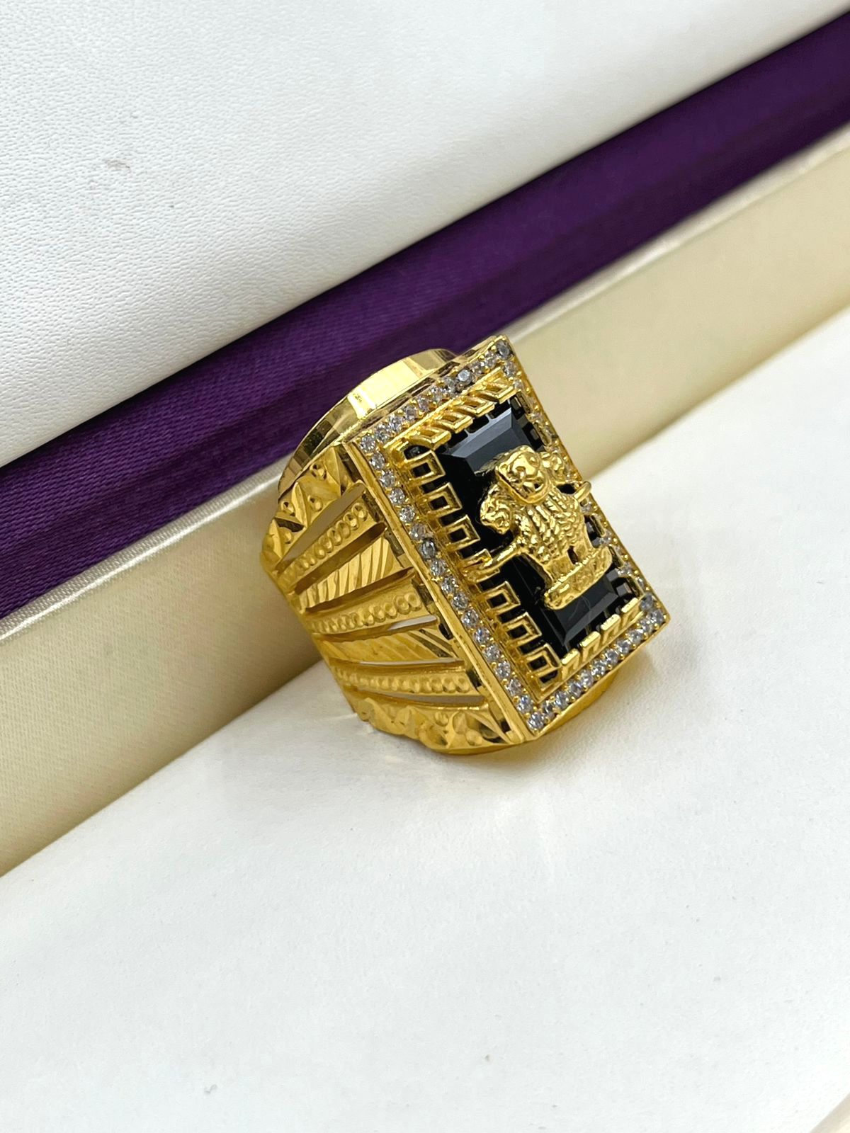 1 GRAM GOLD MUDRA WITH DIAMOND RING FOR MEN DESIGN A-1116