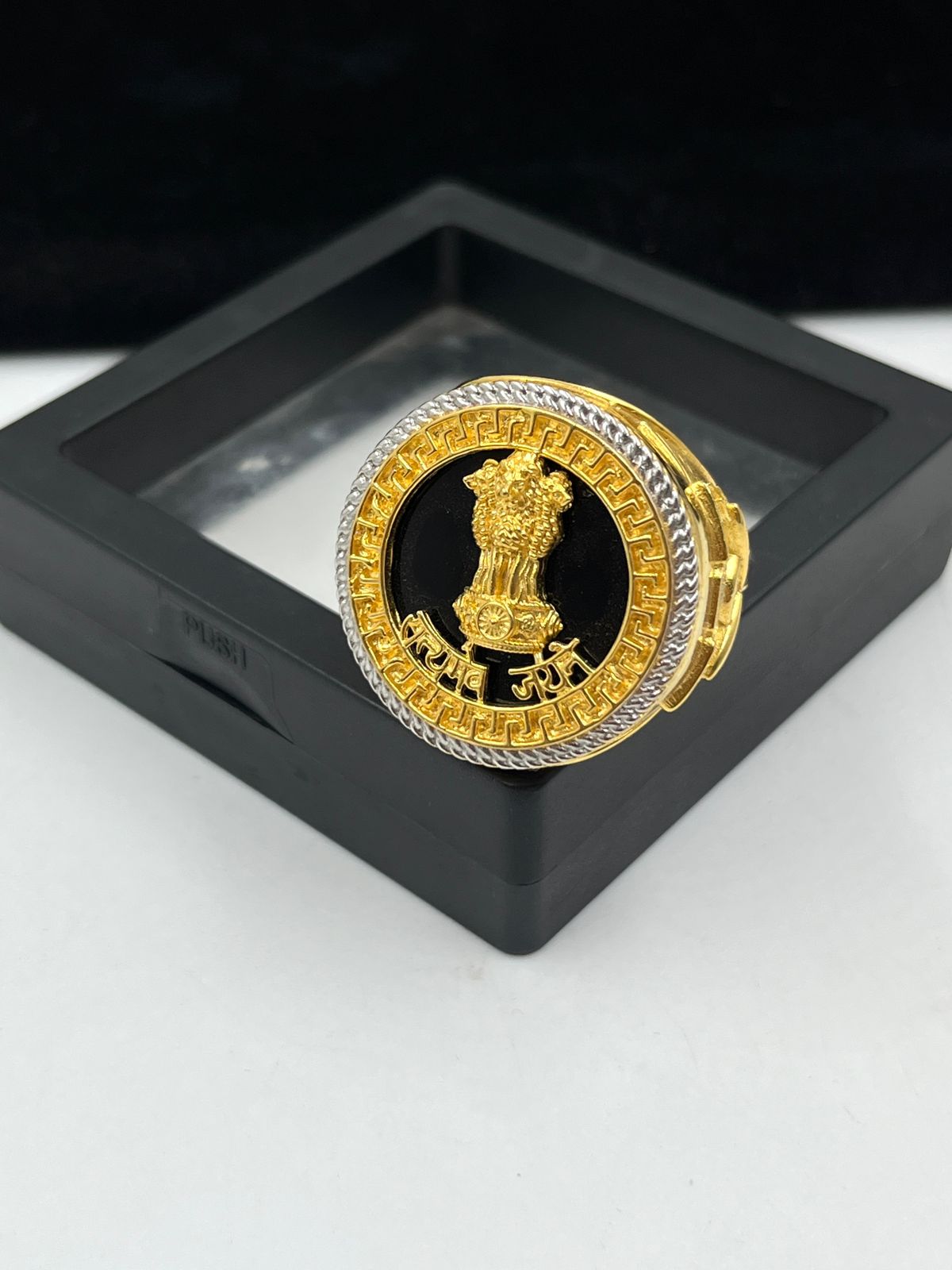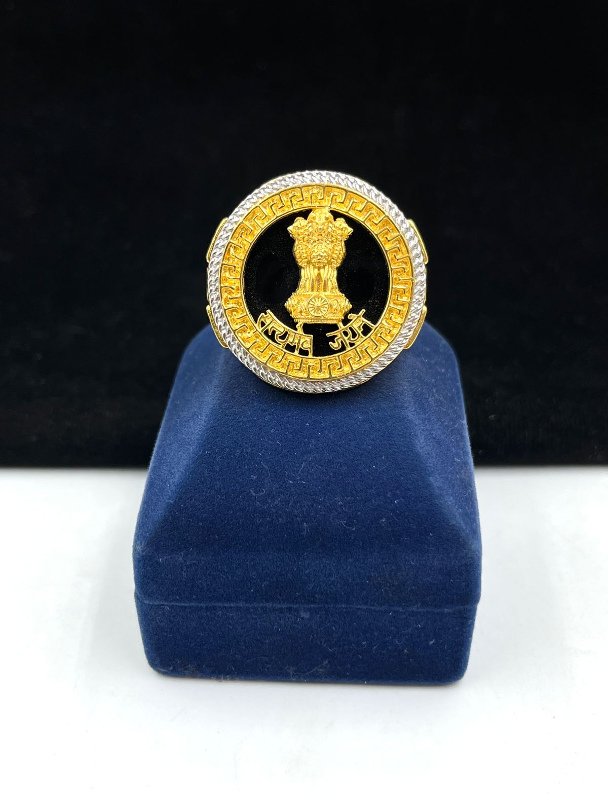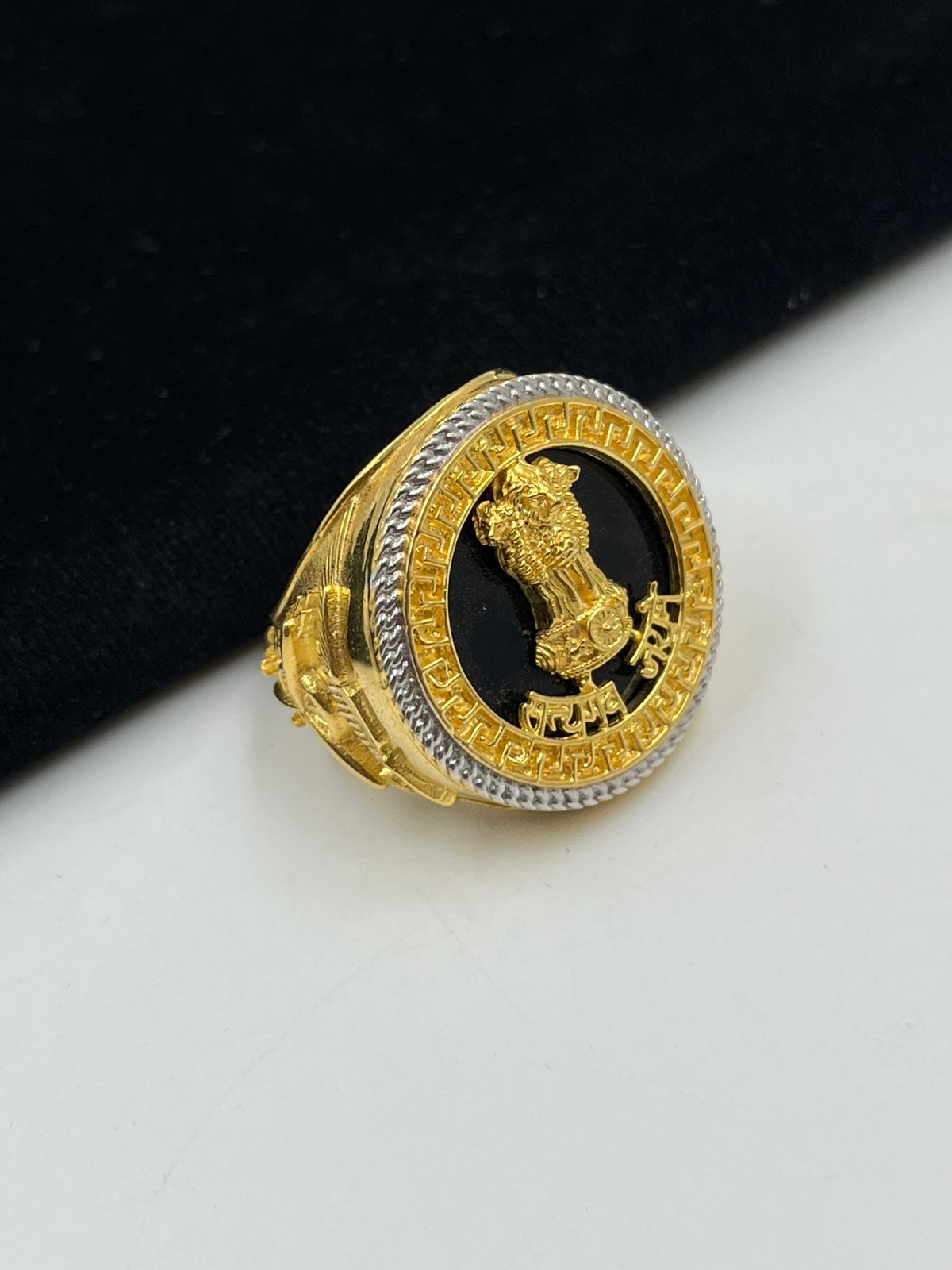 1 GRAM GOLD PLATING MUDRA WITH SATYAMEVA JAYATE RING FOR MEN DESIGN A-372