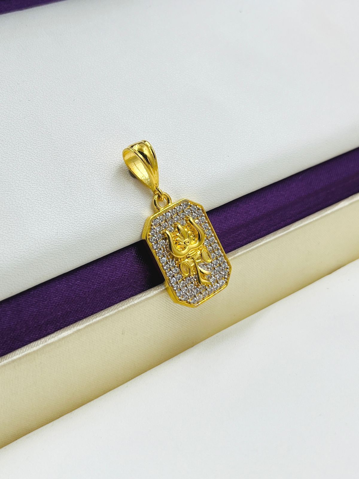 1 GRAM GOLD TRISHUL DAMRU PENDANT FOR MEN DESIGN A-541