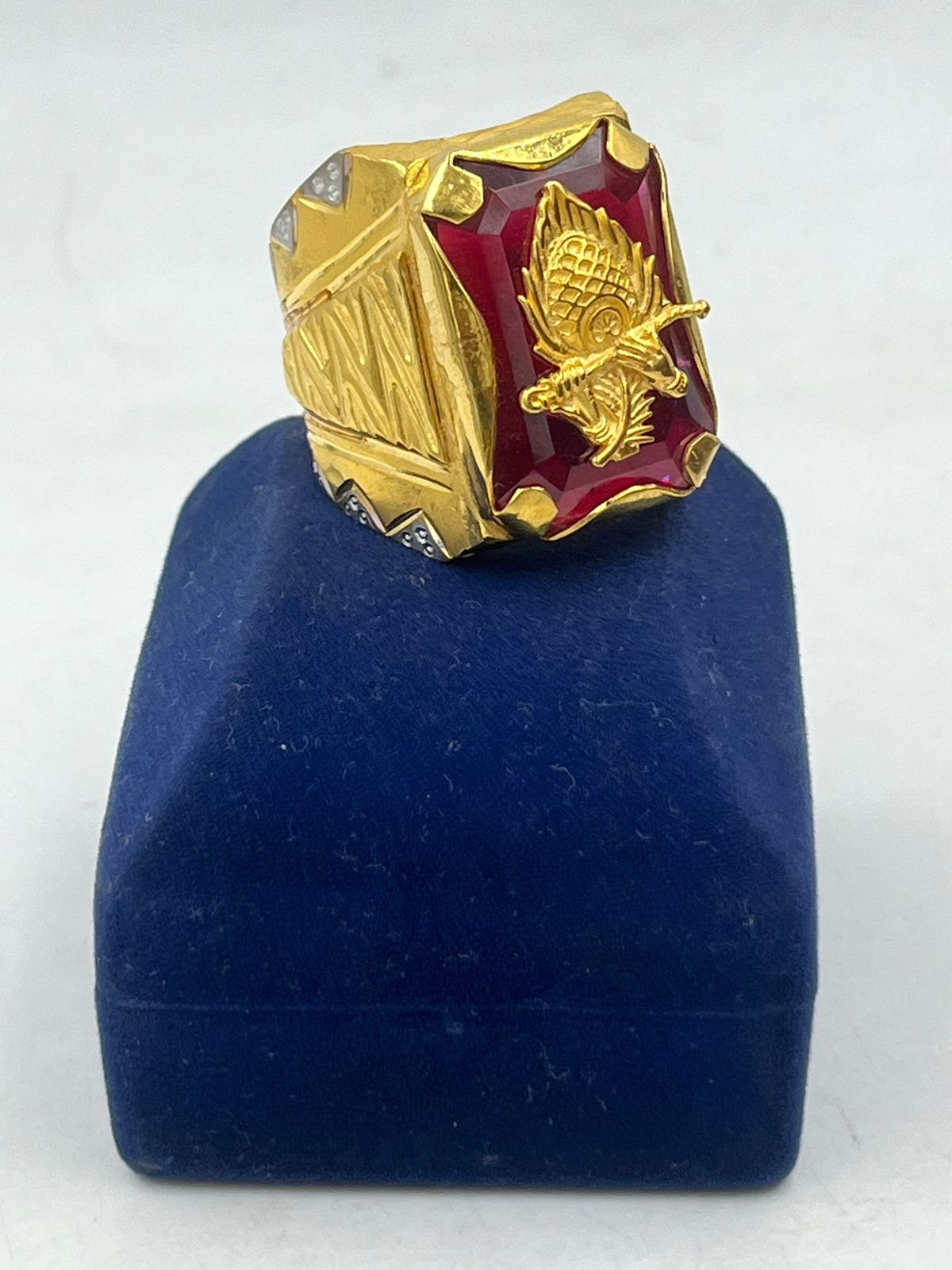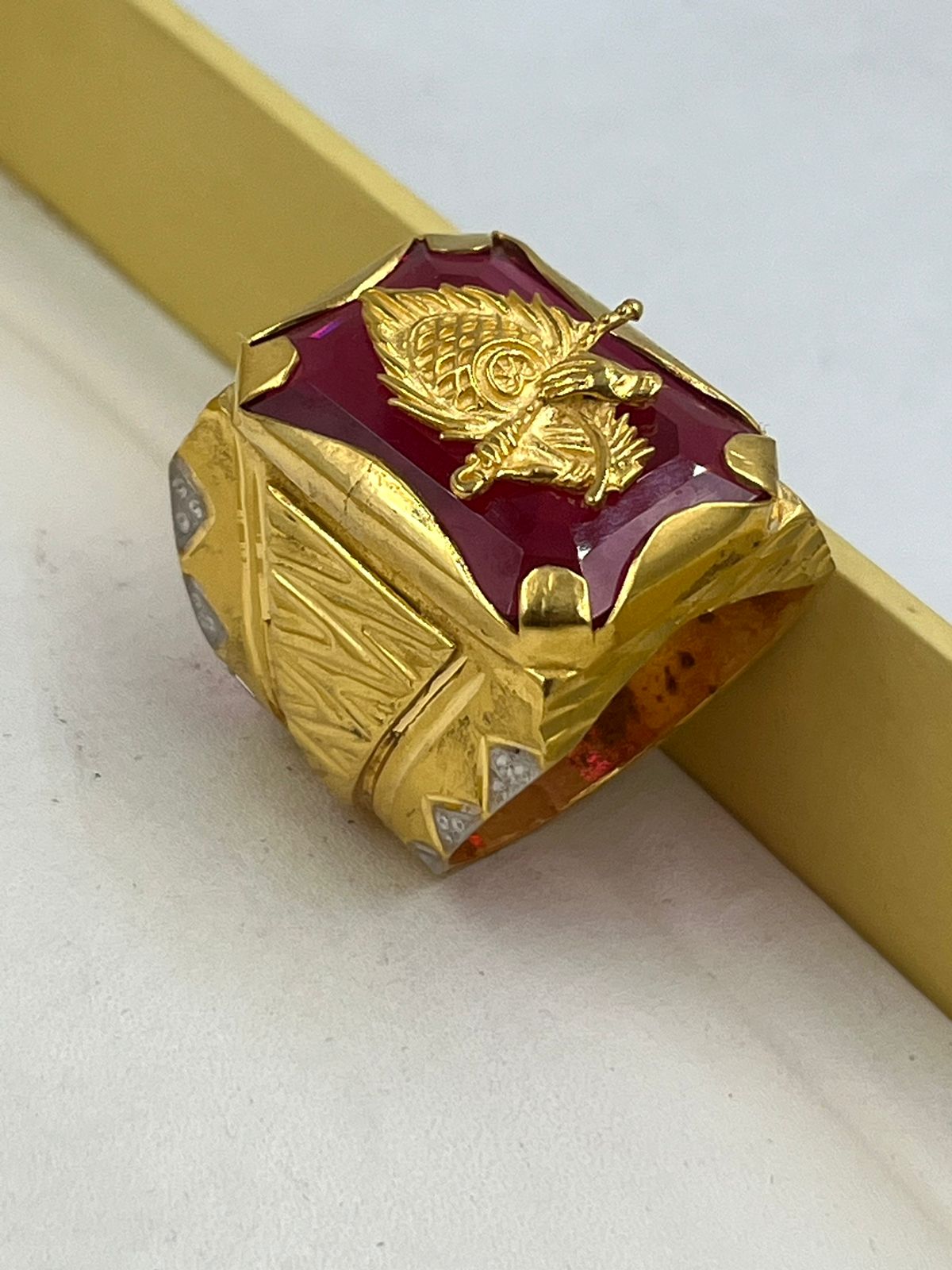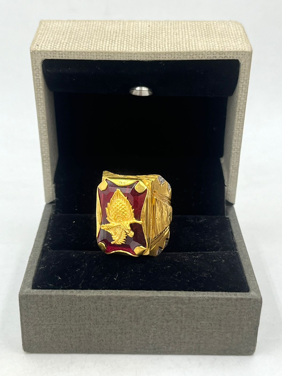 1 GRAM GOLD PLATING MORPINCH WITH RED DIAMOND RING FOR MEN DESIGN A-339